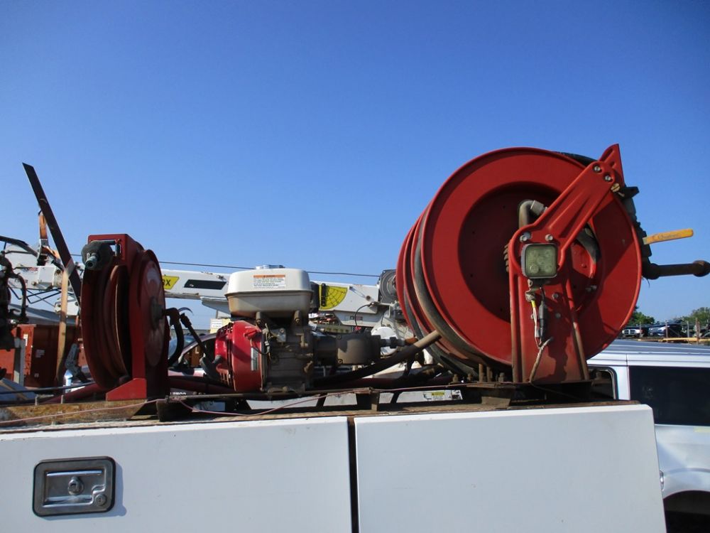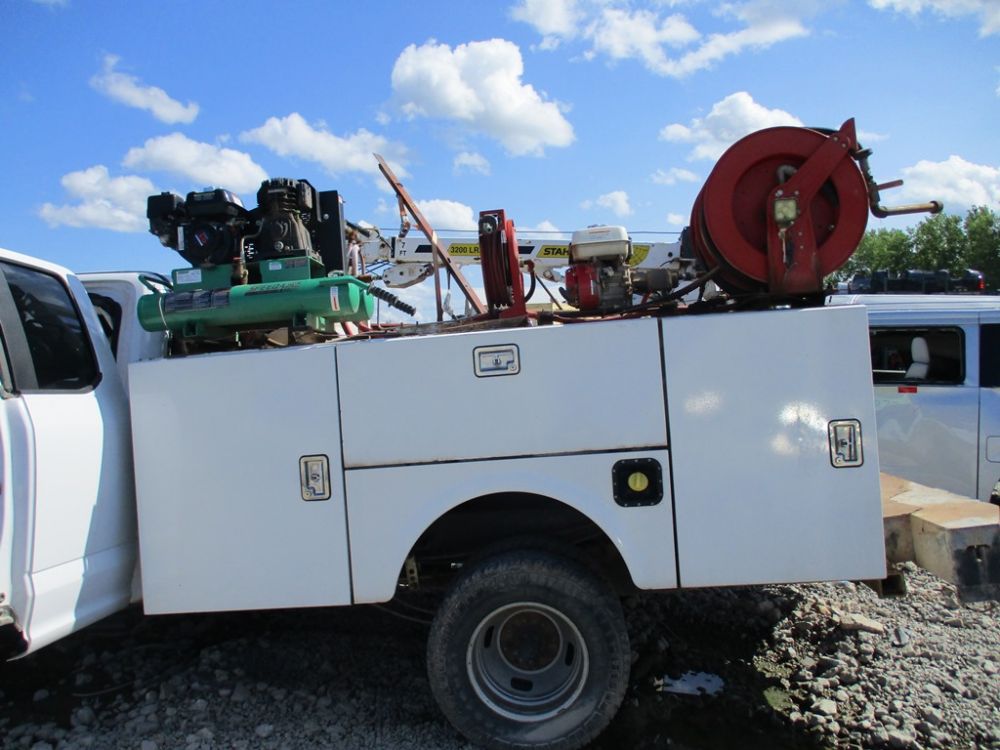 Stahl Utility Bed with Compressor and Reels - Crane has damage. 2019 Ford F350 SD Cab Chassis 168" WB F350 SD 17-22 Cab Chassis 168.0 WB 4X4