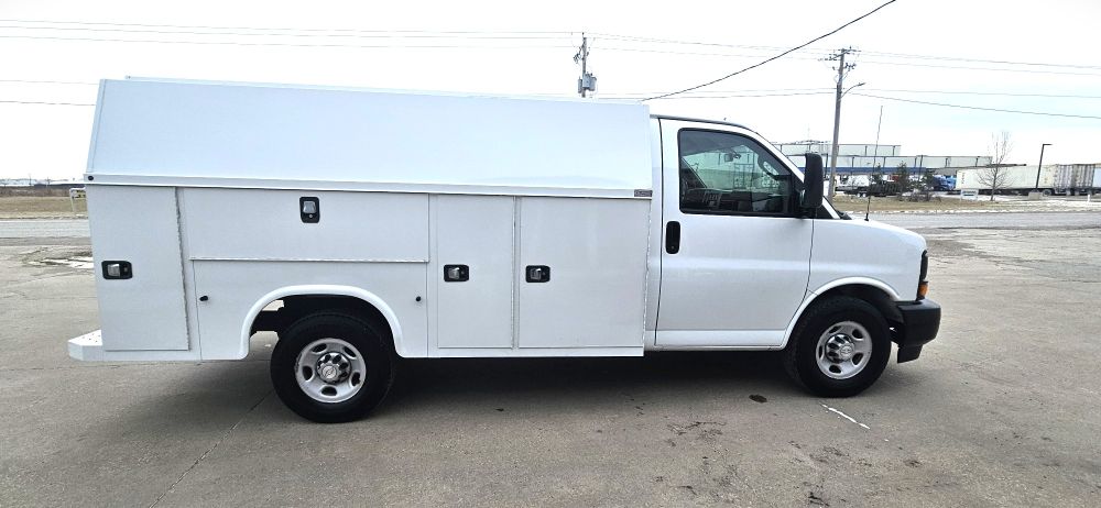 2017 CHEVROLET EXPRESS G3500 KUV UTILITY SERVICE VAN , 6.0L V-8 GAS FLEX FUEL , AUTOMATIC , 245/75R16 TIRES 75 % , POWER WINDOWS AND LOCKS , REMOTE KEYLESS ENTRY , REAR VIEW CAMERA , 11 FT KNAPHEIDE KUV ENCLOSED SERVICE BODY GOOD TITLE , 137,895 ACTUAL MILES